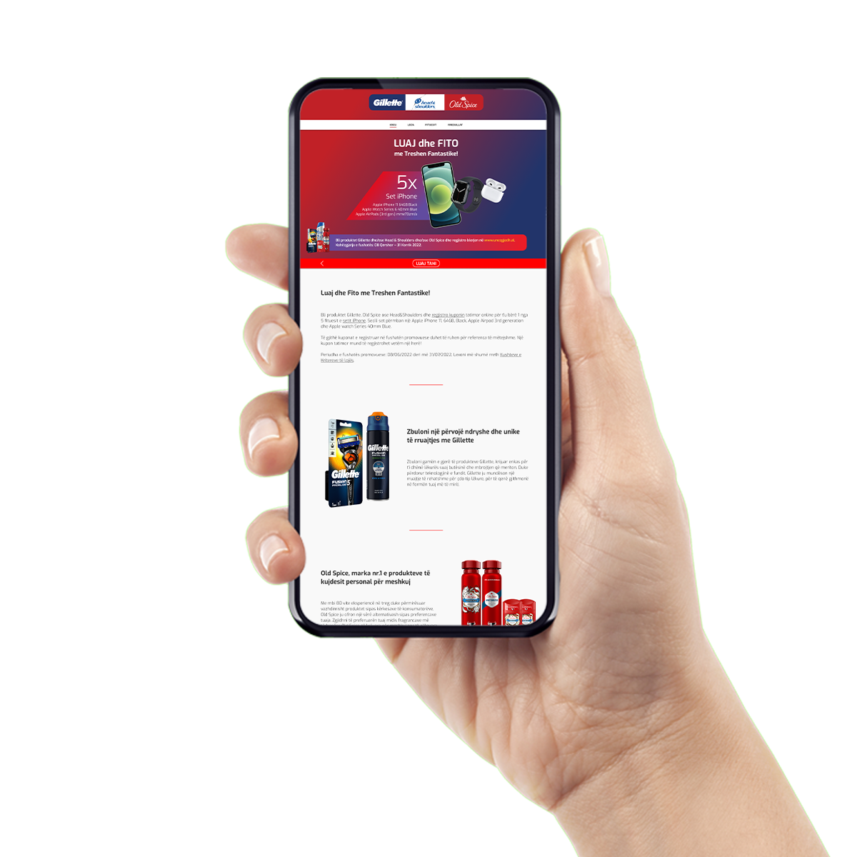 Bli produktet Gillette dhe/ose Old Spice dhe/ose Head&Shoulders me vlerë minimale 300 lekë në supermarkete apo pikat e ndryshme të shitjes në Shqipëri.